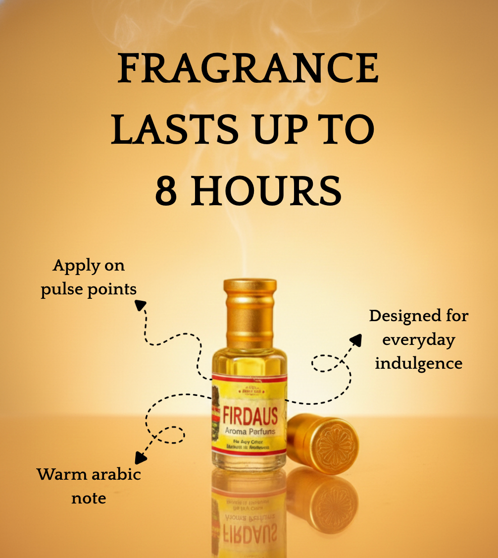 • Firdaus opens with a vibrant burst of herbal and green notes, blended with soft florals and a subtle woody base that adds warmth and balance.