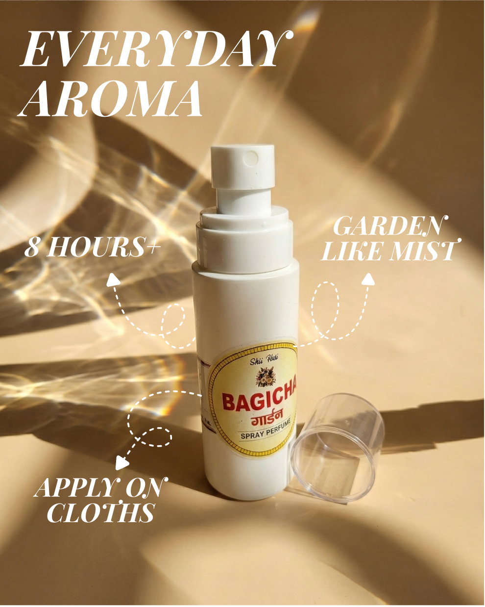 • Bagicha is a refreshing fragrance that captures the lively aroma of a blooming garden filled with fresh flowers and natural greenery. Its scent opens with a soft burst of floral freshness, creating the feeling of walking through a peaceful garden surrounded by nature’s beauty. The fragrance settles into a smooth and uplifting aroma that feels vibrant, clean, and naturally charming.