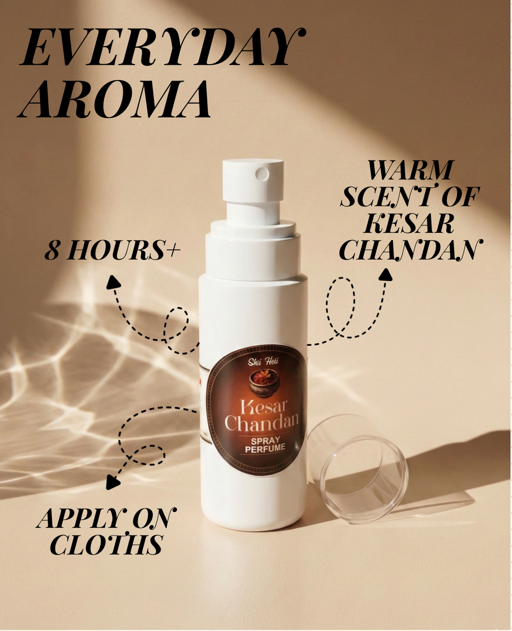 • Kesar Chandan is a rich and luxurious fragrance that blends the warm sweetness of saffron with the smooth, creamy depth of sandalwood. The scent feels spiritual, comforting, and elegant, creating an aura of calm sophistication. Its warm woody notes leave a long-lasting and graceful trail, making it perfect for both traditional and special occasions