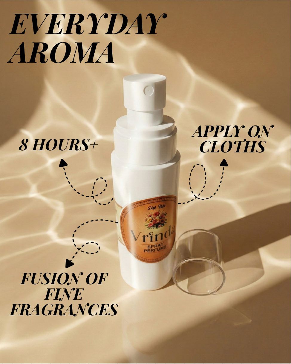 • Vrinda is a refreshing and graceful fragrance crafted from a delicate blend of soft floral mist with a gentle touch of citrus brightness. The scent opens with a light, uplifting freshness and slowly settles into a smooth floral heart, creating a beautifully balanced aroma that feels clean, lively, and elegant. Its subtle yet captivating character leaves a pleasant and refreshing trail